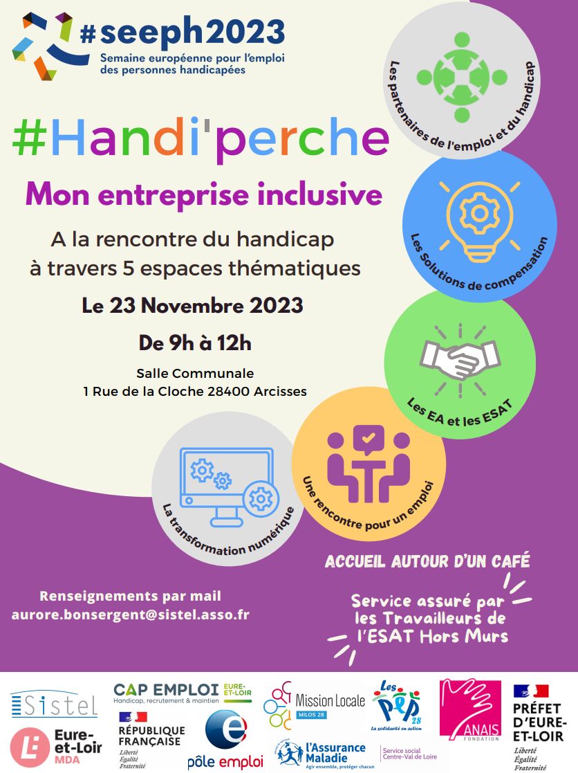 AgefiphFiphfpPôle emploi Mission locale Conseil départemental MDA SISTEL CARSAT DDETSPP 28 ESAT ANAIS ESAT HORS LES MURS ESAT PEP 28