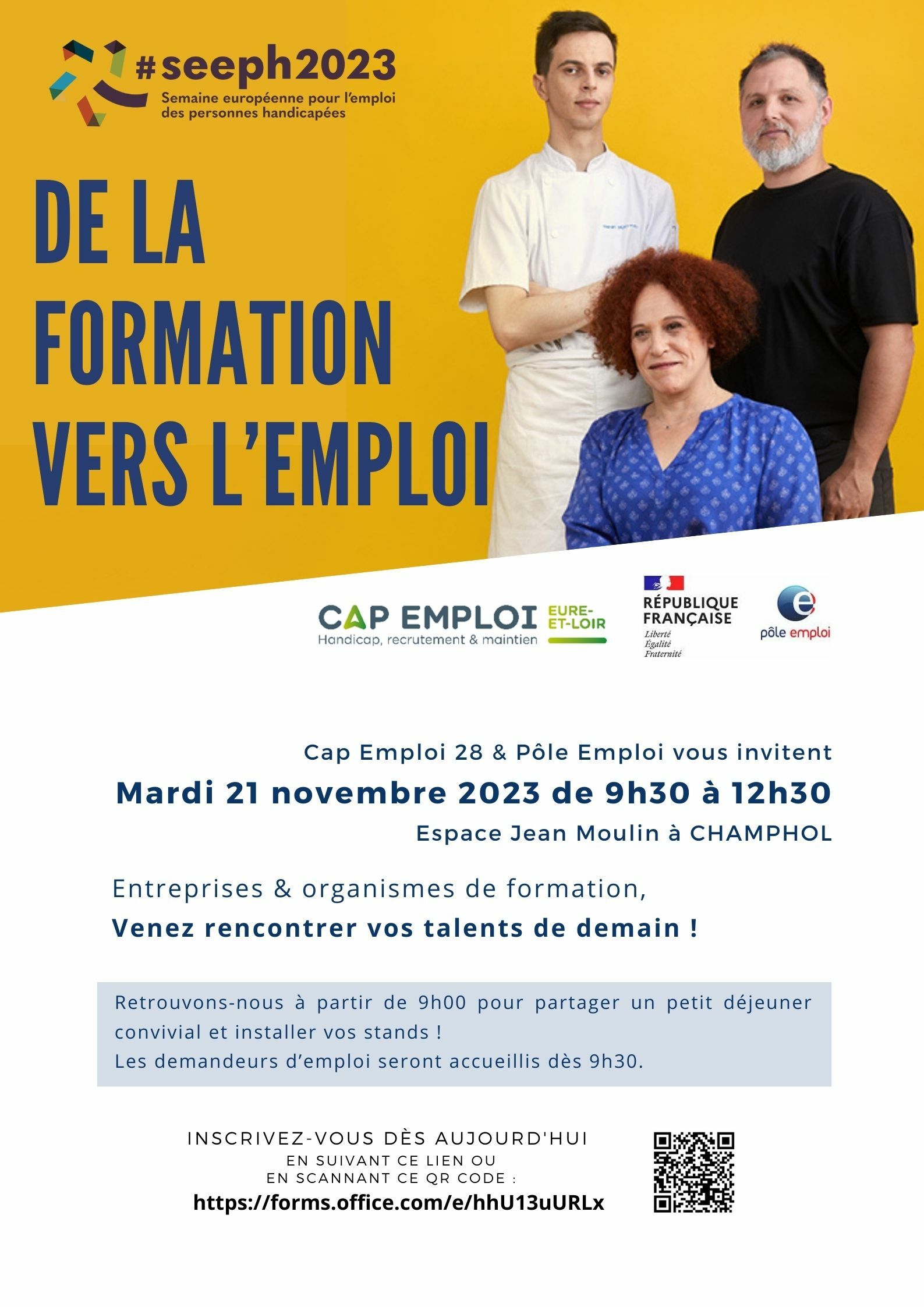 Chaque année, la SEEPH est l'occasion de communiquer positivement sur la non-discrimination des personnes en situation de handicap, l’égalité et la solidarité dans l’emploi. En Eure et Loir et pour 2023, Cap Emploi organise des actions en partenariat sur la région. Au programme : • Un Espace Rallye Formation à destination des personnes en situation de handicap : présence des organismes de formation pour donner de l'information sur les parcours et l'offre de formation sur le 28 • Un Espace Job Dating avec la présence des entreprises qui recrutent. Vous êtes recruteur et vous souhaitez participer ? N’hésitez pas à prendre contact avec CAP EMPLOI 02 37 88 32 32 ou contact@phare28.com
